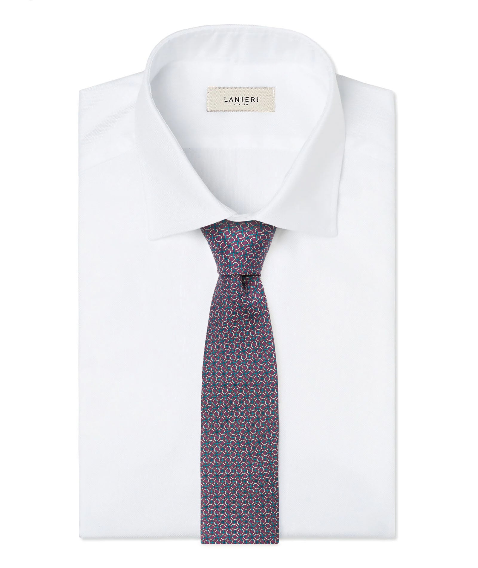 Cette cravate est réalisée en 100% soie en Italie. Élégante, formelle et raffinée, elle présente un motif à chaînes violettes qui en fait un accessoire de style indispensable pour les occasions les plus formelles ou pour le bureau. Les cravates Lanieri peuvent être personnalisées pour créer un style unique et personnel.