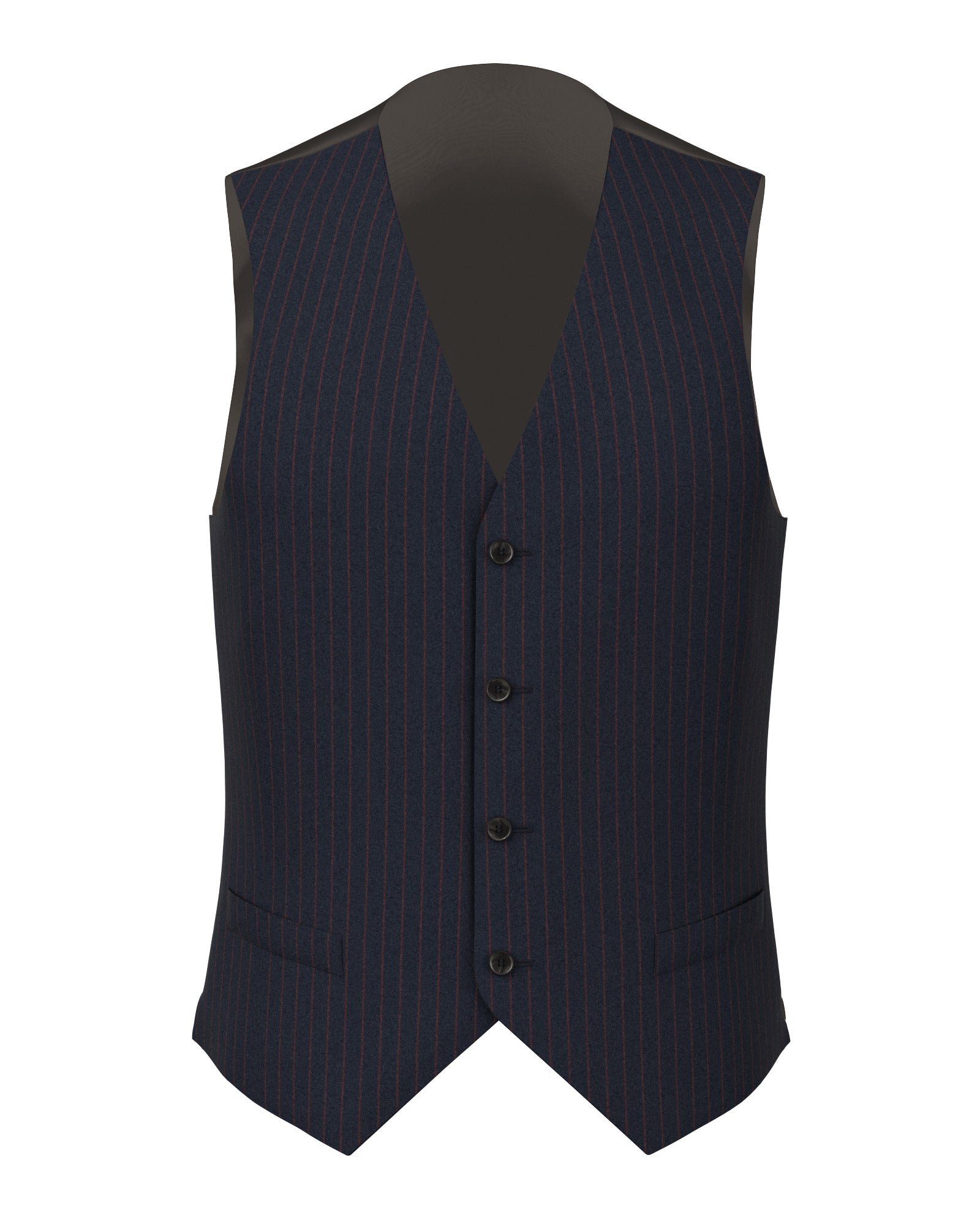 Gilet réalisé Sur Mesure en flanelle de laine de la manufacture de laine Reda. Dans des tons bleu classiques, il est égayé par de fines rayures rouges qui ajoutent une touche lumineuse au vêtement. À porter en hiver, lors des journées les plus froides, avec le costume du même tissu pour une tenue trois pièces élégante et confortable, même au bureau.
