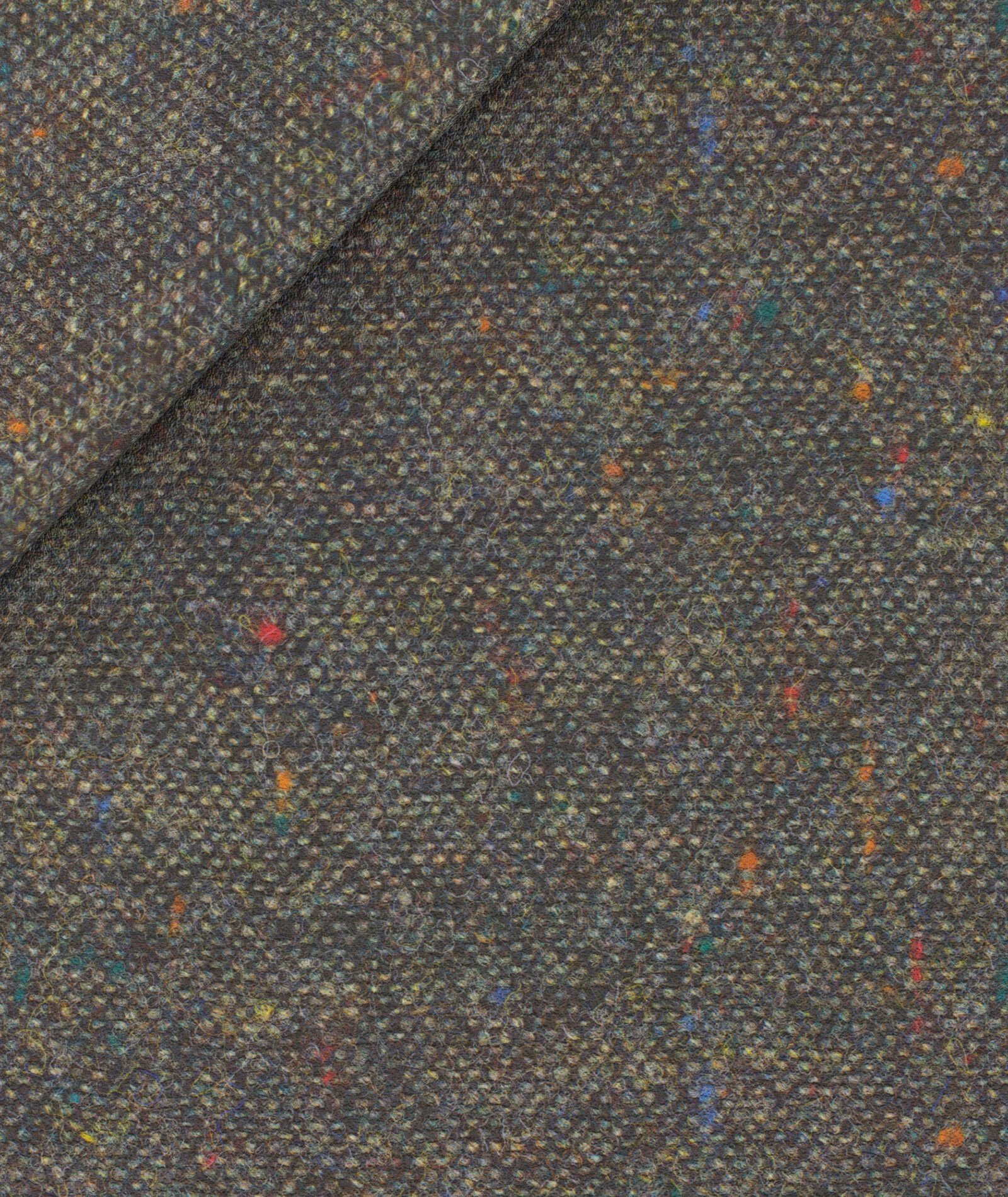Questo abito Su Misura è realizzato con un tessuto di lana del lanificio Bottoli. In 100% lana shetland, filato presenta il caratteristico aspetto pieno e consistente con un mano più ruvida rispetto alla lana merino, che definisce un'allure british senza tempo, di grande ricercatezza. La lavorazione knickerbocker - che consiste nell'aggiunta di tops di lana di altri colori - crea l'effetto multicolor - illumina la base verde. Ne risulta un capo raffinato perfetto per il tempo libero.