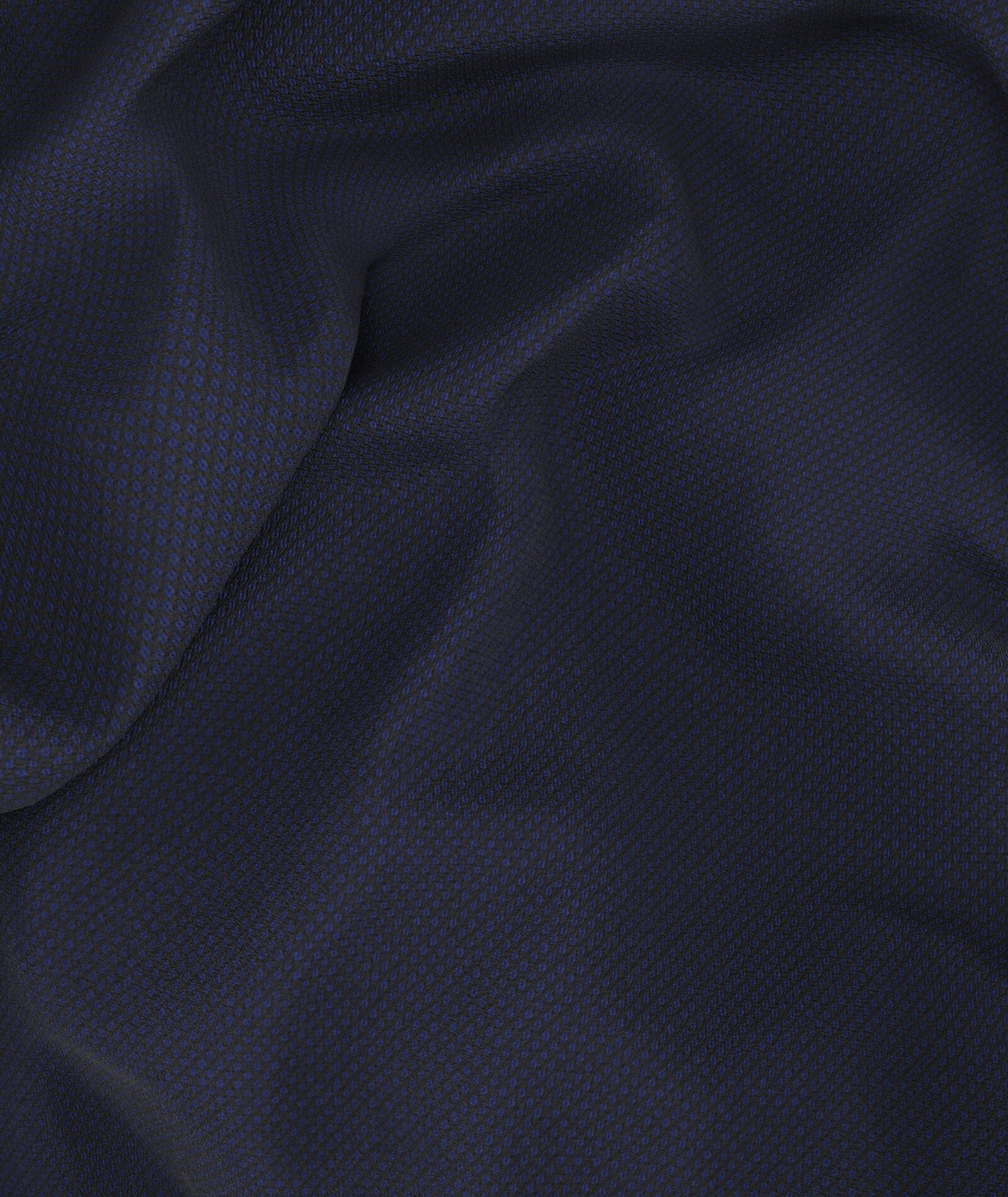 This made to measure suit is made in Italy with a dark blue fabric in bird's eye wool from the Loro Piana wool mill. In 100% 150's wool, it is part of the Australis collection that gathers fabrics of exceptional finesse characterised by comfort, breathability, fluidity and lightness. The bird's eye pattern obtained with the harmonious armour creates a delicate and refined geometric design effect in light blue on a dark blue background and makes it a classic of extreme sophistication perfect to wear all year round and suitable for formal events and business occasions.